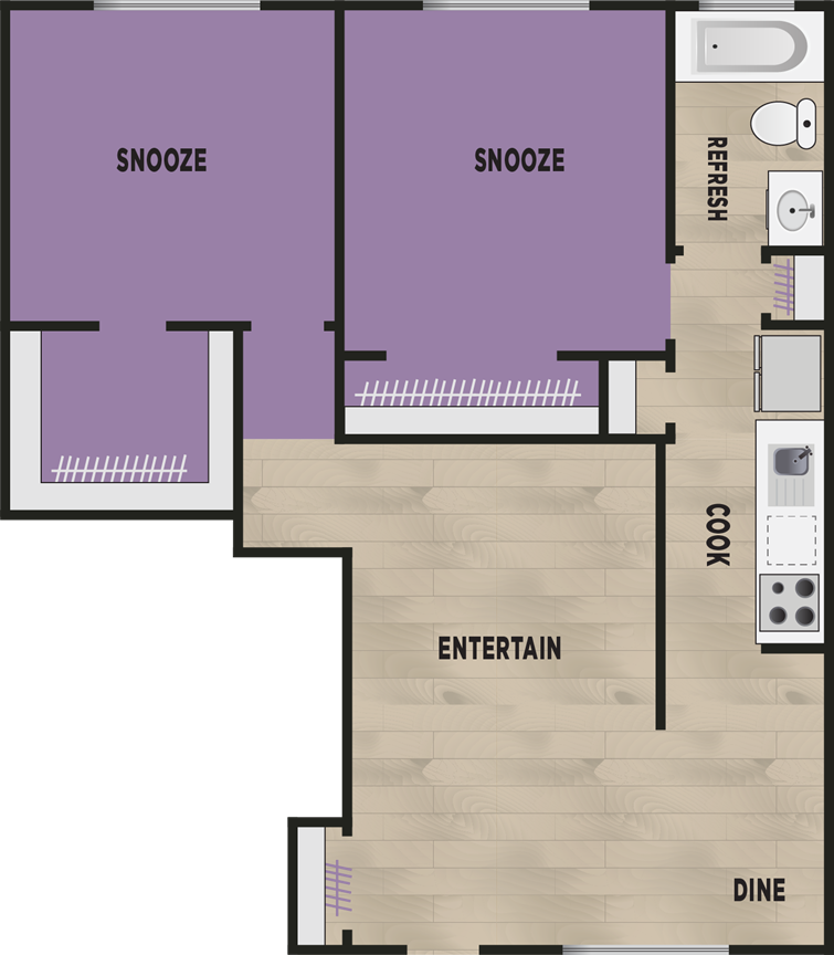 If you have been looking for one bedroom apartments in Denver, Colorado, or two-bedroom options, you have come to the right place. We take a special pride in offering our 1- and 2-bedroom apartments knowing they will satisfy every need for updated, urban living. Each of our living spaces feature tons of natural light and convenient design. We thought of every detail to make your apartment home the ideal place to live! Simply scroll through our exceptional overhead floor plan options, and start getting a sense for how you will make it your own. Whether you are looking for some of the coziest one bedroom apartments Denver has to offer or a two-bedroom space, we have you covered.